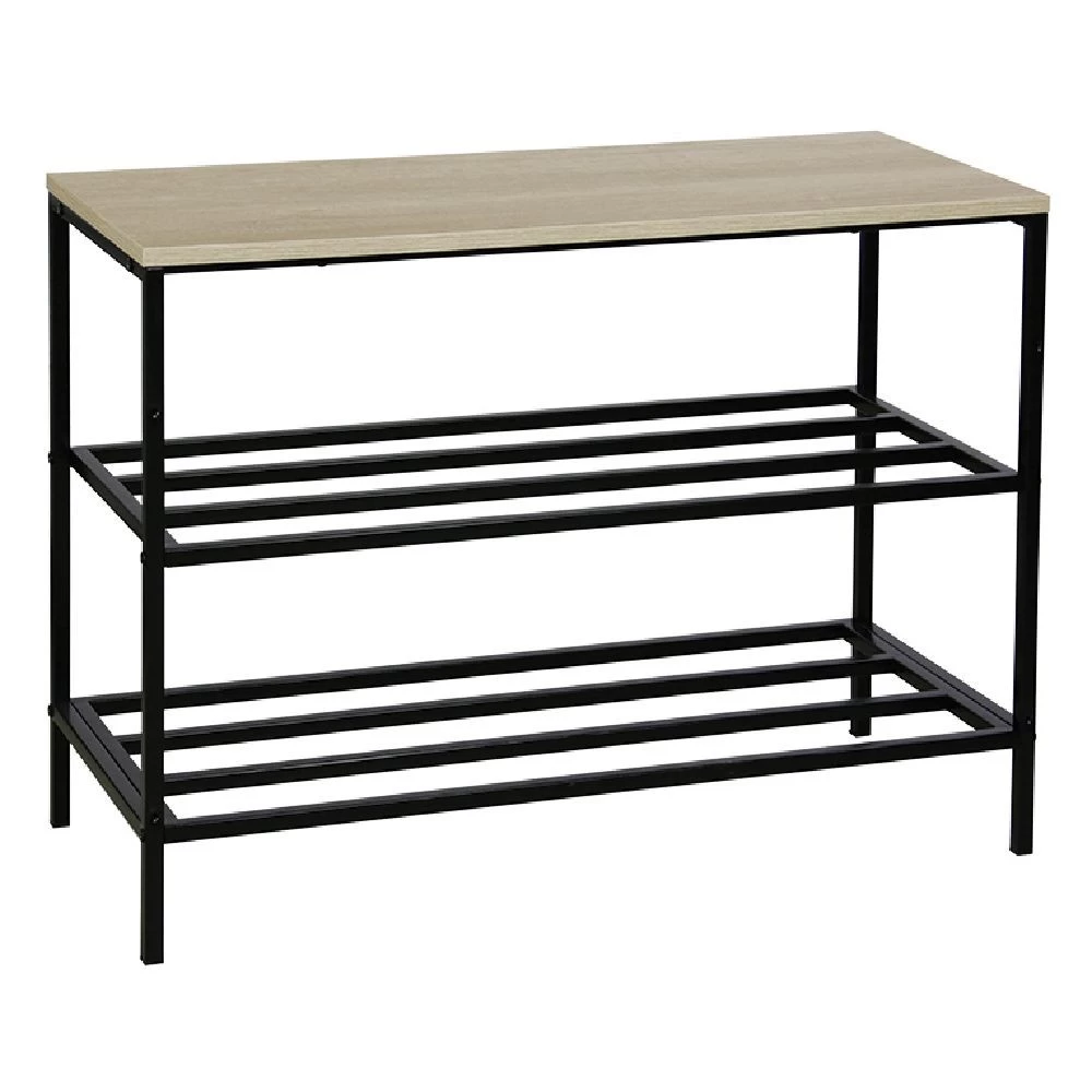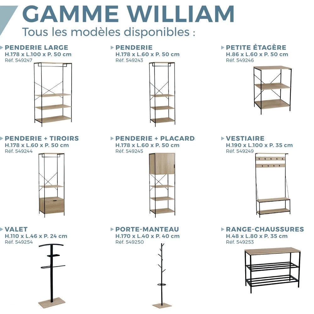 Ce range chaussures de la gamme WILLIAM, composé de métal noir et recouvert d’une planche de bois, offre un style épuré et industriel.