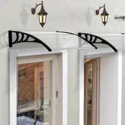 Auvent Marquise De Porte Design Voûté Arrondi Dim. 100L X 80l X 23H Cm Polycarbonate Plastique Noir