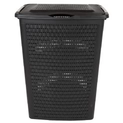 Panier à Linge Avec Poignées Et Couvercle Design Rotin Noir 50 L