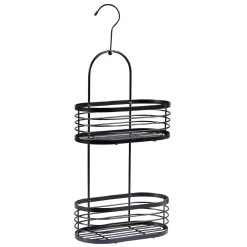 Serviteur de douche en métal noir à 2 niveaux. Décoratif et pratique pour garder son nécessaire de toilette à portée de main.