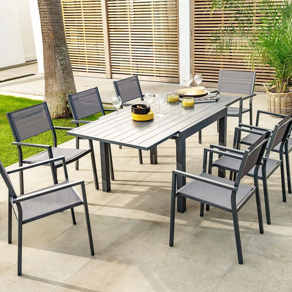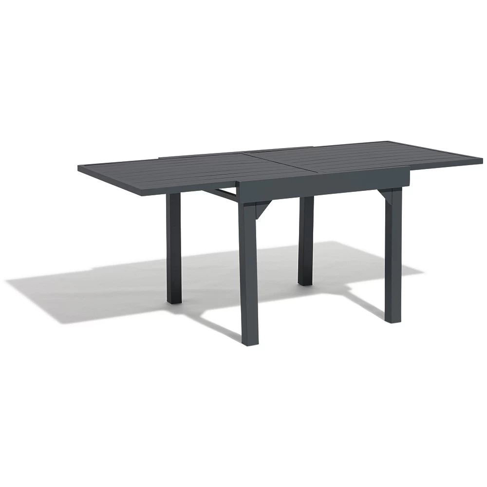 Moderne et compacte, cette table extensible en aluminium gris ardoise de la gamme Glasgow fera merveille sur votre terrasse ou dans le jardin. Son design à lattes apportera chaleur et convivialité à votre extérieur. Très facile à déplier, elle est dotée d’une ouverture papillon vous permettant de passer confortablement de 4 à 8 convives. Légère et robuste, sa structure en aluminium traité époxy ne vous demandera pas d’entretien particulier.