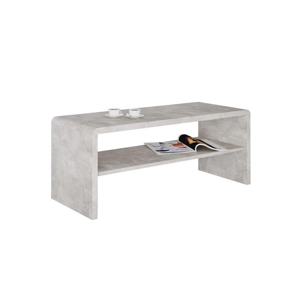 – La table basse est fabriquée à partir de panneaux de particules de bois recouvert d’un mélaminé au décor béton.