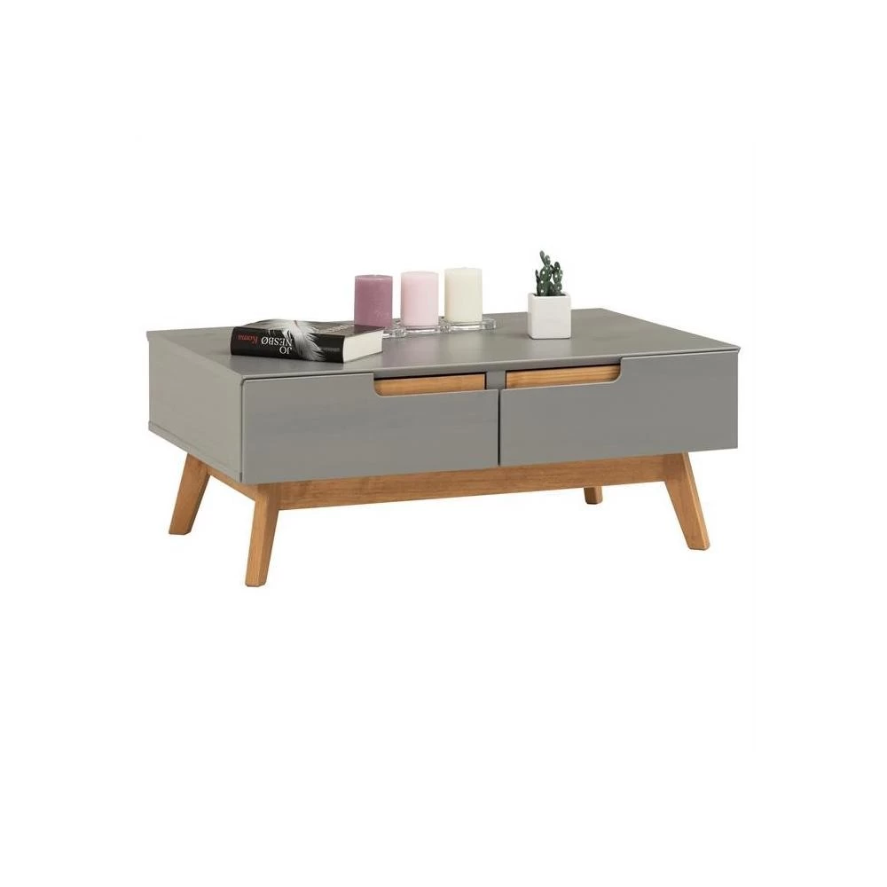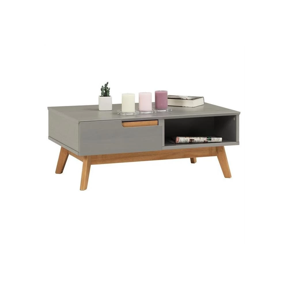 … suit la tendance actuelle des meubles au style scandinave. Les 2 tiroirs sans poignée apparente d’un côté de la table et les 2 compartiments ouverts de l’autre côté vous offrent suffisamment d’espace de stockage pour toutes vos affaires personnelles ainsi protégées et à l’abri ou bien à portée de main. Vous pourrez moduler l’utilisation de cette table de salon selon vos envies : tiroirs d’un côté et niches de l’autre ou en mixant les deux l’un à côté de l’autre ! Avec son look travaillé au design nordique disponible dans différents coloris très tendances ce meuble de rangement en bois massif ne passera pas inaperçu dans votre intérieur.