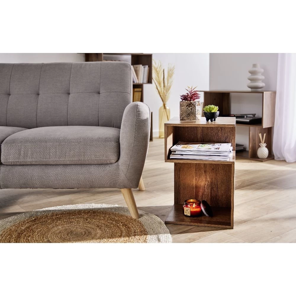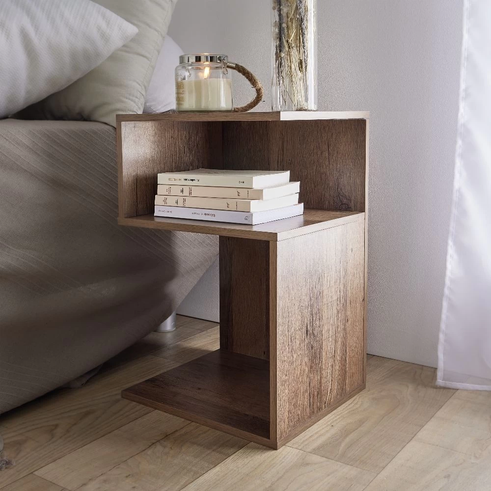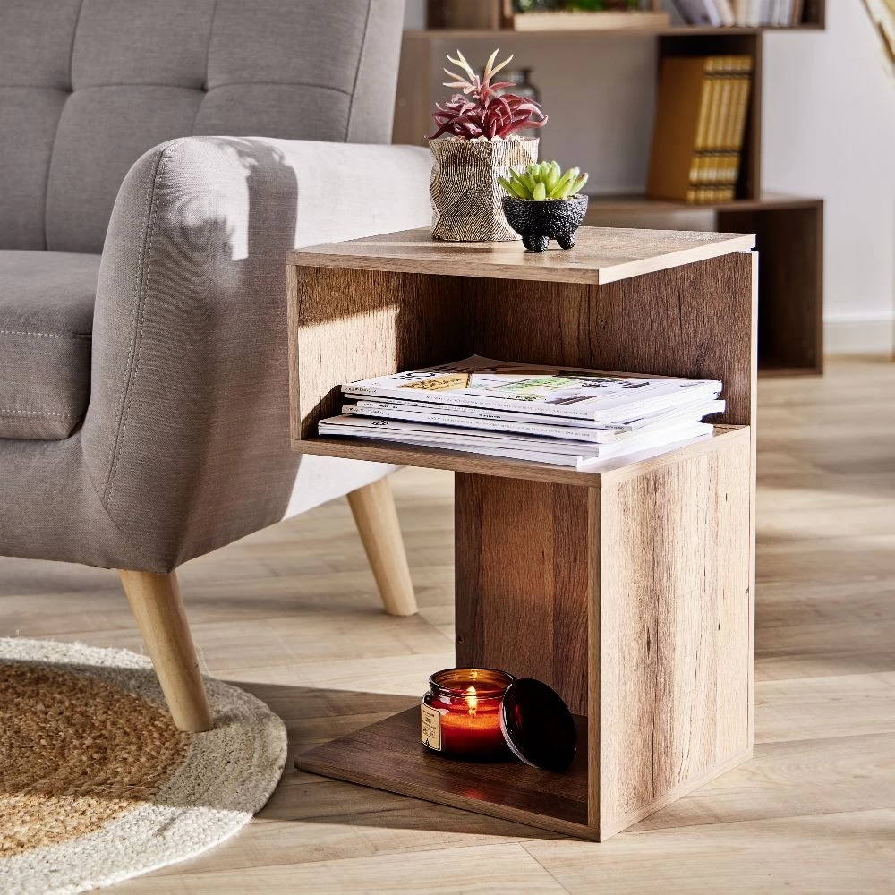 En bout de canapé ou table de chevet, optez pour ce meuble composé de 2 niches en contreplaqué marron. Simple et efficace avec sa structure légèrement décalée, il vous servira au quotidien avec style et originalité !