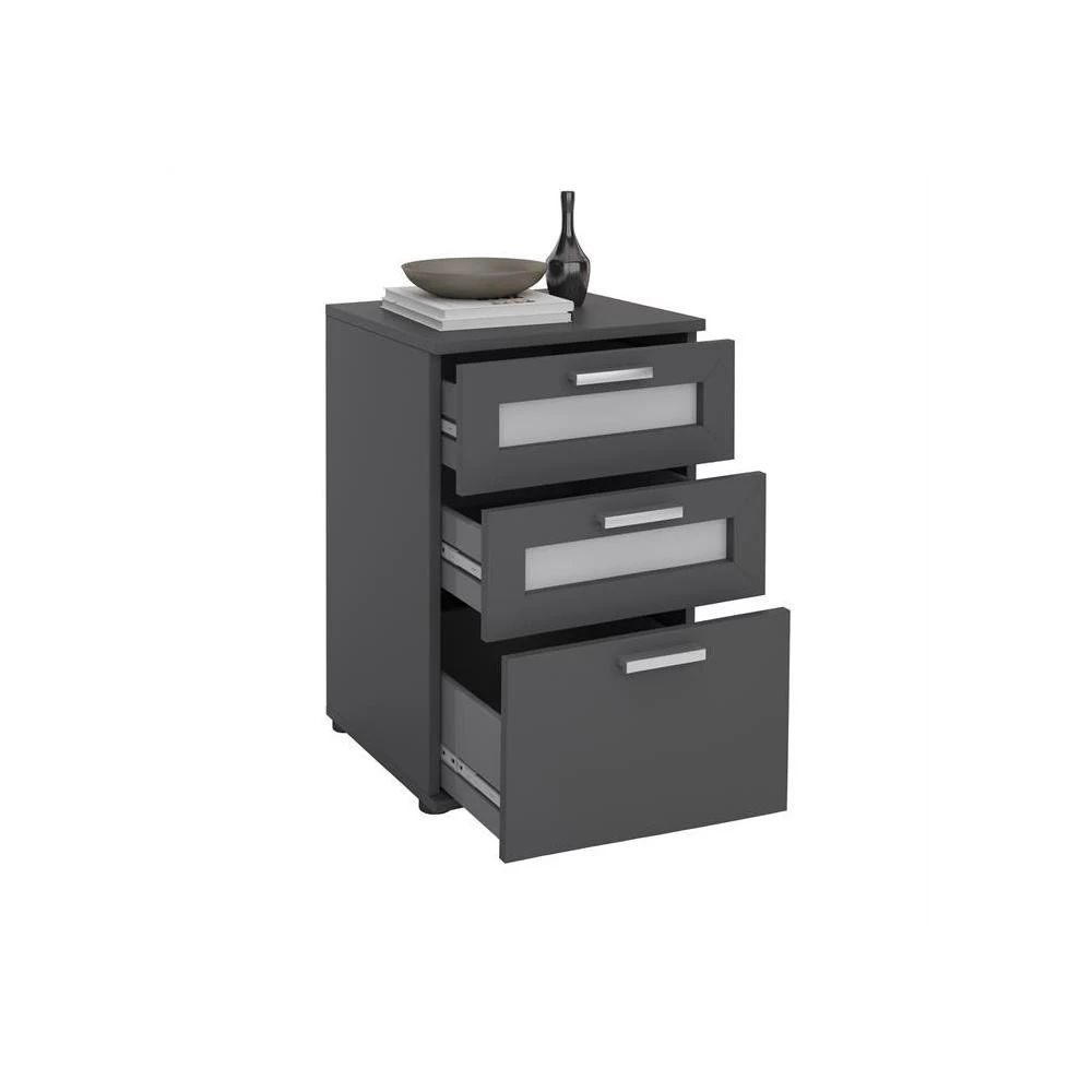 – Avec 3 tiroirs dont 2 avec en façade un insert vitré satiné