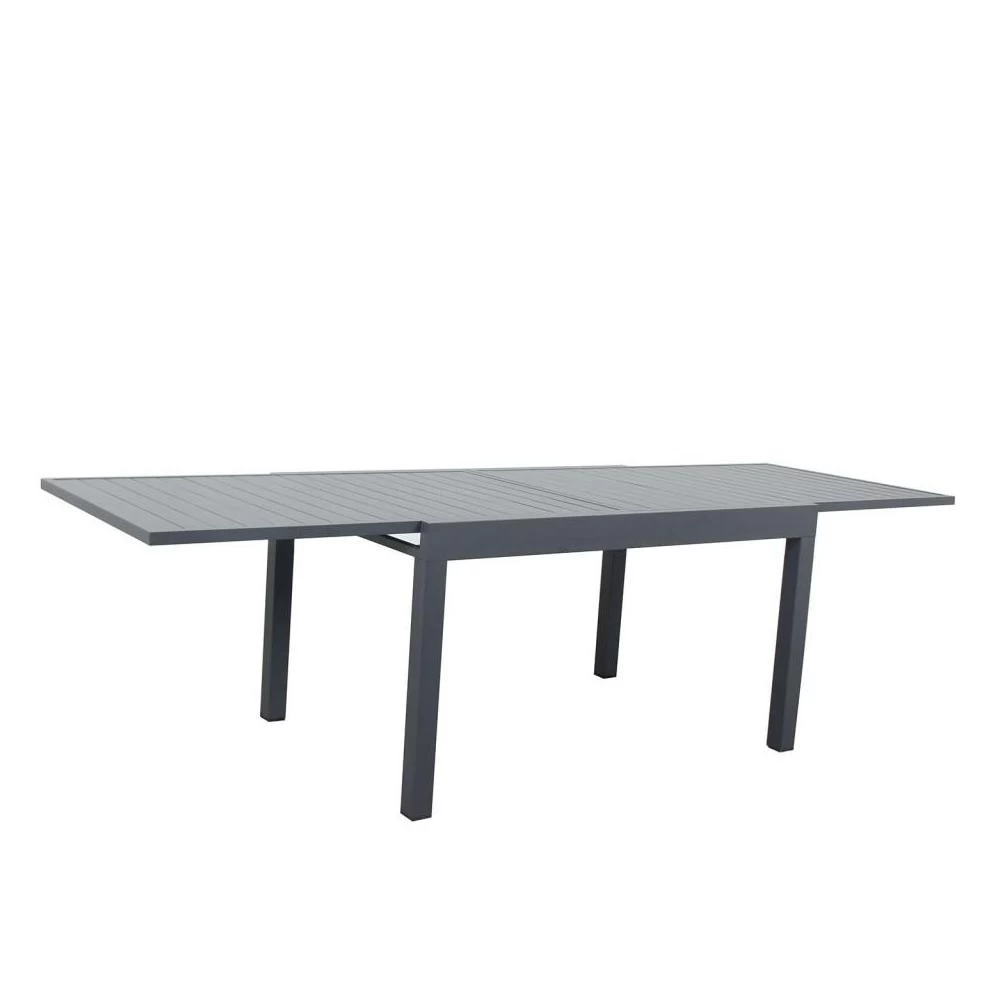 La structure de table est en Aluminium et recouverte d’une peinture époxy couleur gris anthracite. Ne nécessitant pas d’entretien, cette table ne rouille pas avec les intempéries.