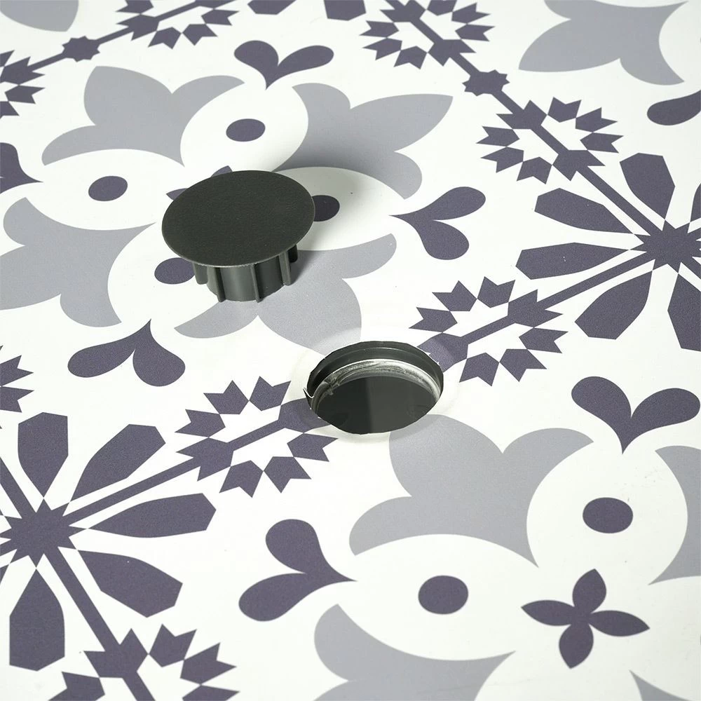 Un emplacement se trouve au centre de la table pour un parasol de 4 cm de diamètre. Le cache-trou de parasol est inclus.
