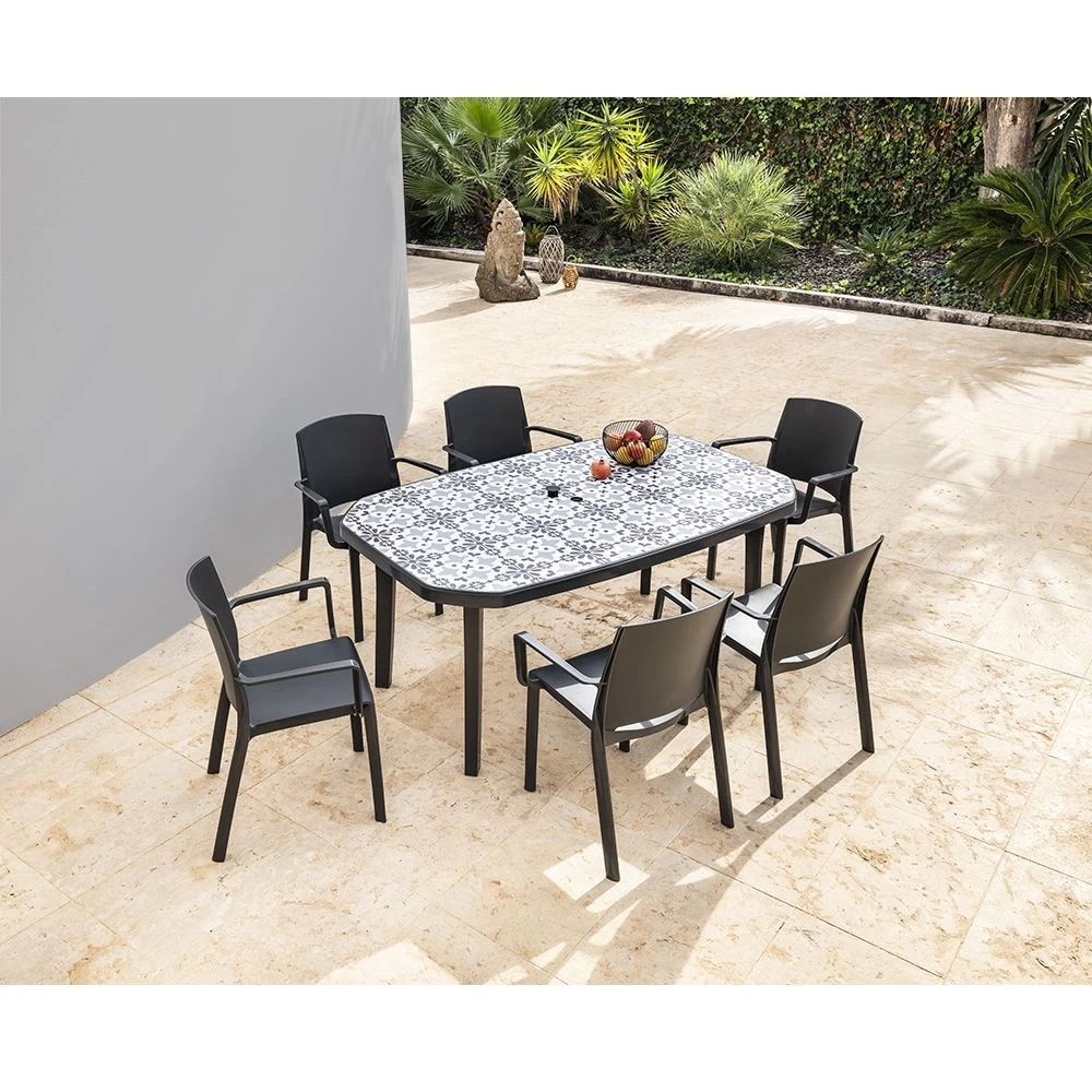 En résine, cette table vous offre qualité et solidité en plus d’être résistante aux UVs et intempéries.