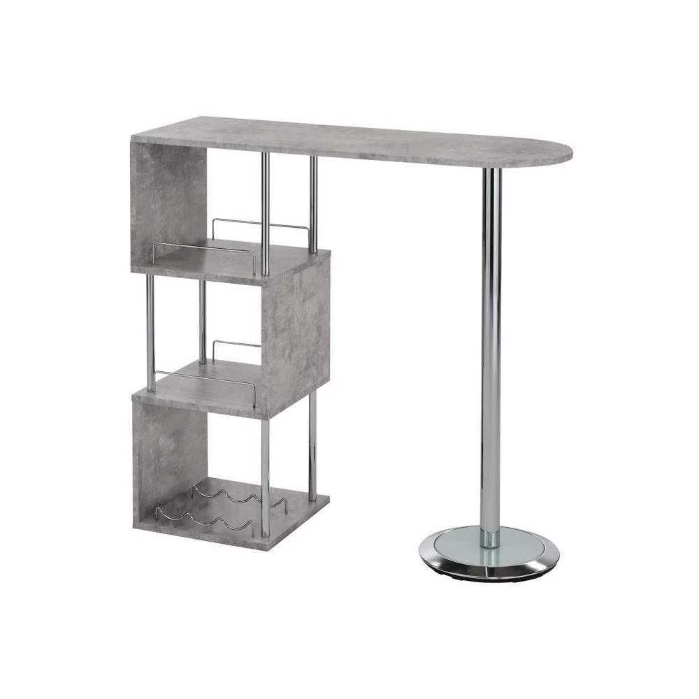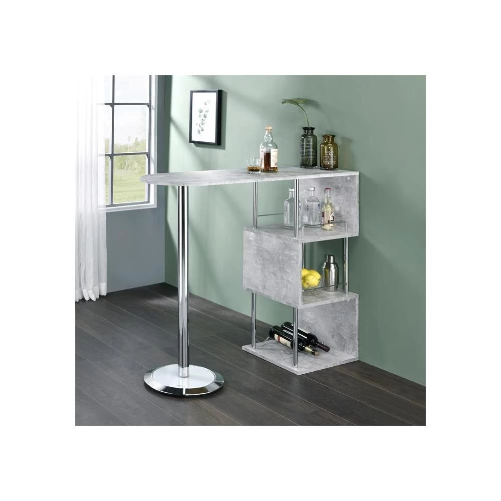 – La table haute de bar est fabriquée à partir de panneaux de fibres de bois de moyenne densité recouvert d’une feuille décorative au décor béton.