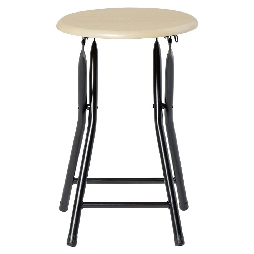 Tabouret pliant bicolore noir et naturel.