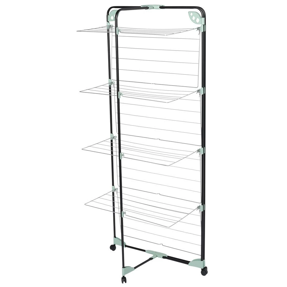 Séchoir tour sur 4 niveaux avec une capacité d’étendage de 32 mètres, pratique pour sécher son linge en hauteur sans occuper tout l’espace de votre intérieur.