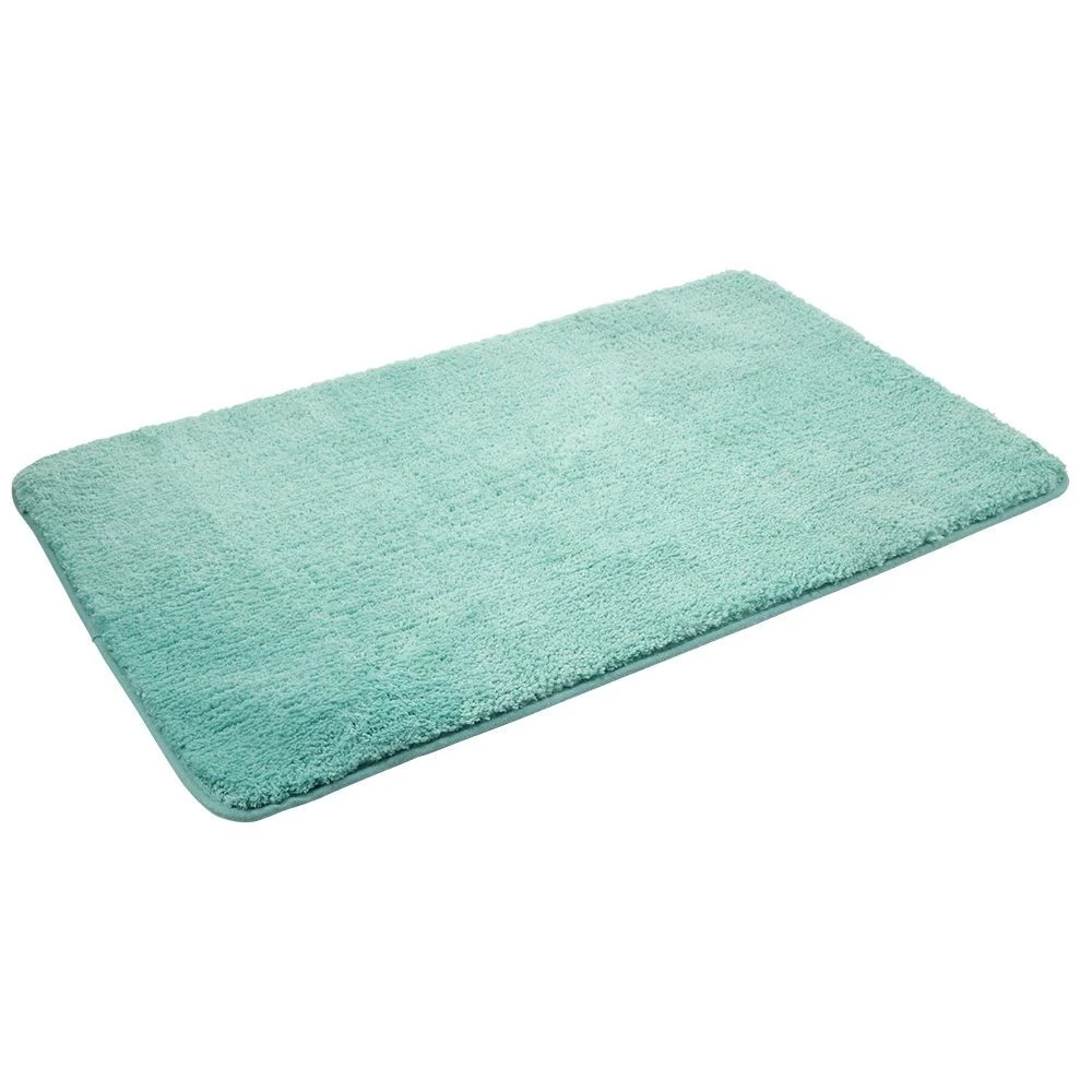 Tapis de salle de bain uni bleu en microfibre moelleux et absorbant.