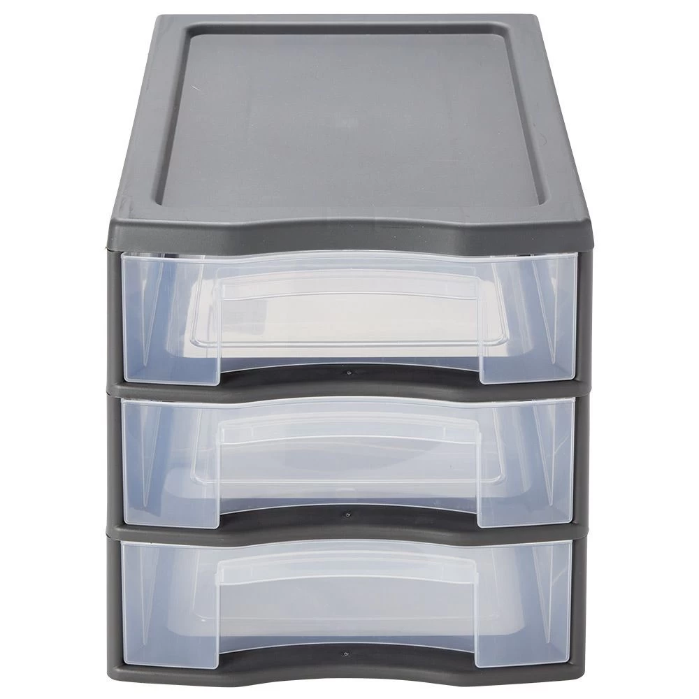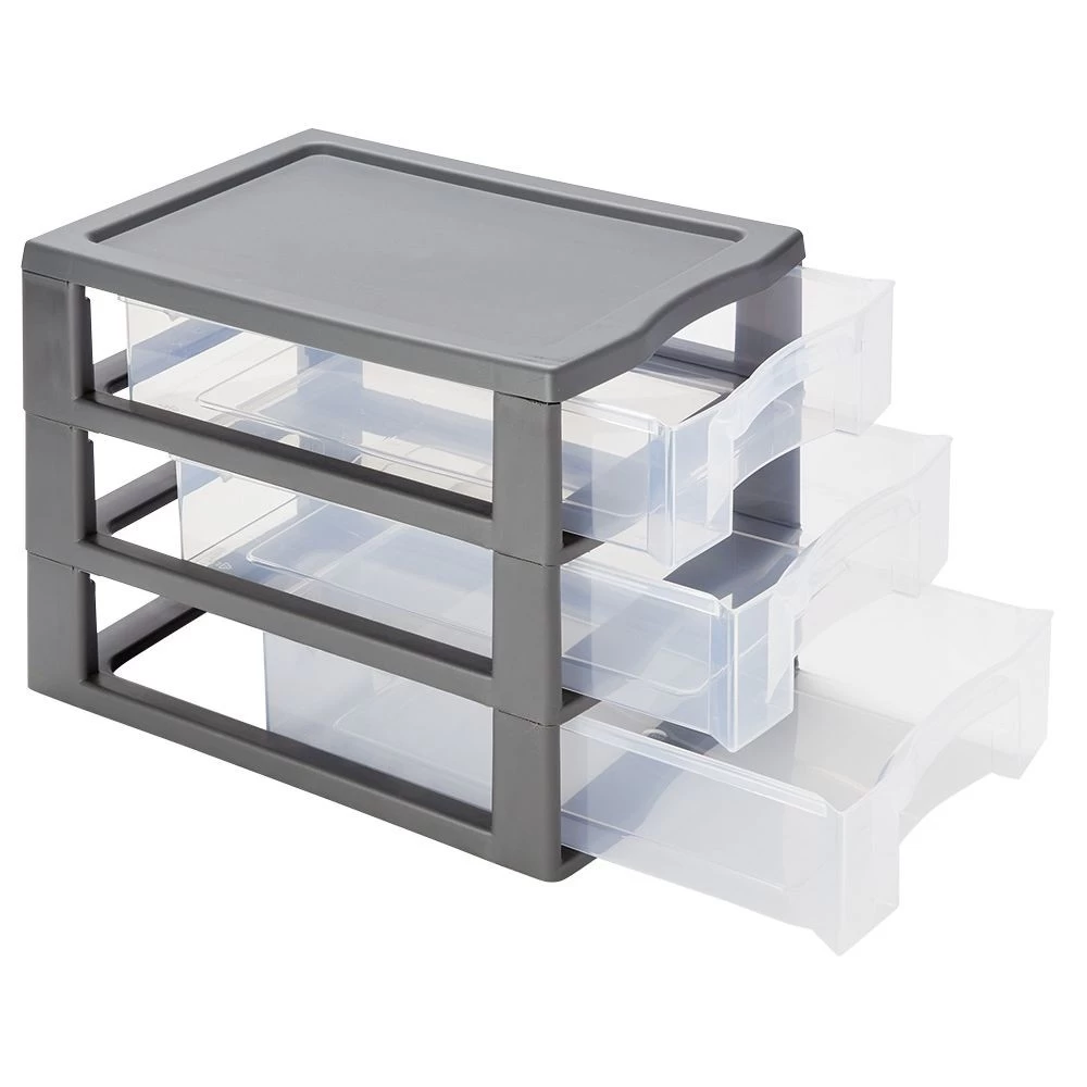 Cette tour de rangement de couleur grise est équipée de 3 tiroirs spécialement adaptés pour accueillir vos accessoires au format A4.